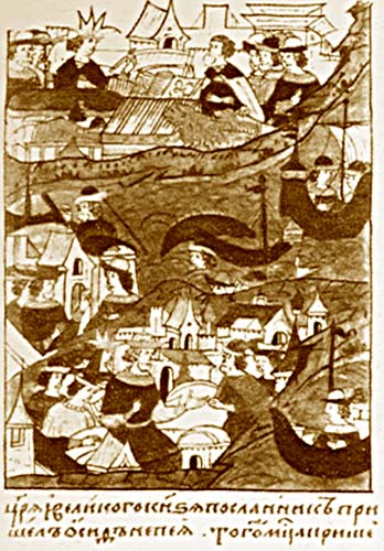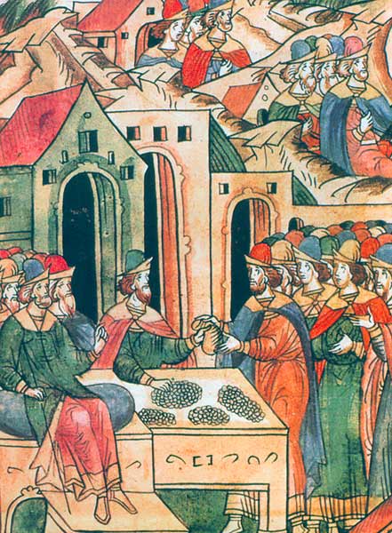 из Лицевого свода. XVI в. // Деньги России, 1900 лет. - М.: Родина; Фодио, 2000. - C. 7. |