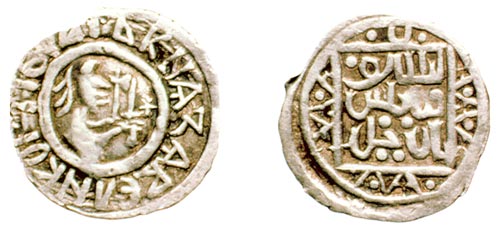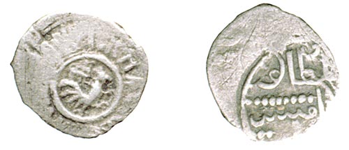 ![]() Великое княжество Московское. Великий князь Димитрий Иоаннович Донской (1359-1389). Денга. Серебро. Диаметр 19 мм // Деньги России, 1000 лет / [А.С. Мельникова, В.В. Уздеников, И.С. Шиканова; Общ. ред.: А.С.Мельникова]. - М.: Родина: Фодио, 2000. - с. 25. |