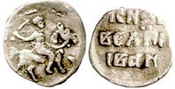 ![]() Великое княжество Московское. Великий князь Василий Васильевич Темный (1425-1462). Денга. Серебро. Размер 15х13 мм // Деньги России, 1000 лет / [А.С. Мельникова, В.В. Уздеников, И.С. Шиканова; Общ. ред.: А.С.Мельникова]. - М.: Родина: Фодио, 2000. - с. 25. |