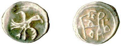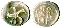 ![]() Великое княжество Московское. Великий князь Василий Дмитриевич (1389-1425). Денга. Серебро. Диаметр 13 мм // Деньги России, 1000 лет / [А.С. Мельникова, В.В. Уздеников, И.С. Шиканова; Общ. ред.: А.С.Мельникова]. - М.: Родина: Фодио, 2000. - с. 25. |