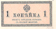 ![]() Билет. Копейка. 1915-1917 гг. Размер 79х43 мм // Деньги России, 1000 лет / [А.С. Мельникова, В.В. Уздеников, И.С. Шиканова; Общ. ред.: А.С.Мельникова]. - М.: Родина: Фодио, 2000. - с. 155. |