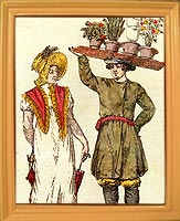 | Разносчик с цветами и госпожа // Волшебный фонарь или Зрелище С.-Петербургских расхожих продавцов, мастеров и других простонародных промышленников, изображенных верною кистию в настоящем их наряде, и представленных разговаривающими друг с другом, соответственно каждому лицу и званию. Ежемесячное Издание на 1817 год. - СПб., в типографии В. Плавильщикова, 1817 год. - с. 72 | ![]() |