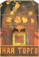 ![]() Вывеска бакалейной и хлебной лавки. Первая четверть XX века. Вороненое железо, масло. 152х112. Государственный музей истории Ленинграда // Русская живописная вывеска и художники авангарда. - Лениниград, 1991. |