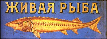 ![]() Вывеска рыбной лавки. Первая четверть XX века. Вороненое железо, масло. Государственный музей истории Ленинграда // Русская живописная вывеска и художники авангарда. - Лениниград, 1991. |