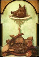 Вывеска гастрономической лавки. Первая четверть XX века. Вороненое железо, масло. 201х117. Государственный музей истории Ленинграда // Русская живописная вывеска и художники авангарда. - Лениниград, 1991. |