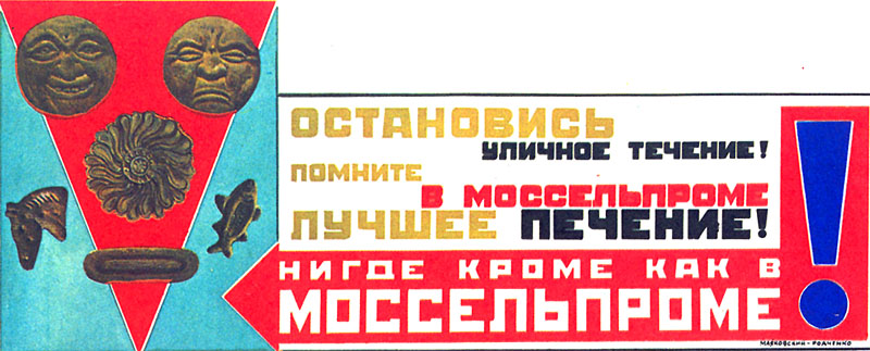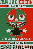 ![]() А. Родченко. Текст В. Маяковского. Реклама сосок. 1923 // Ляхов В. Н. Советский рекламный плакат. - М., 1972. |