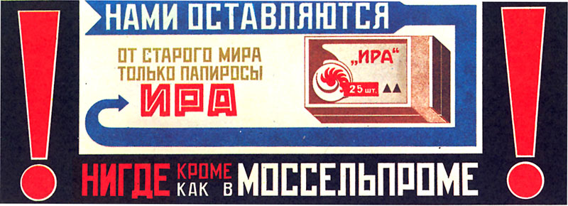 ![]() Реклама папирос 1923 год // В.Ляхов. Советский рекламный плакат. – М., 1972 |