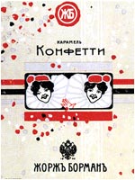 ![]() Неизвестный художник. Обертка шоколада "Боярский". СПб., 1900-е годы, 8,5х7 см// Русский графический дизайн / Авт. текста: Е.Черневич; Сост.: М.Аникст, Н.Бабурина; Дизайн: М. Аникст. - М. : Внешсигма, Б.г. (1997). - с.10. |