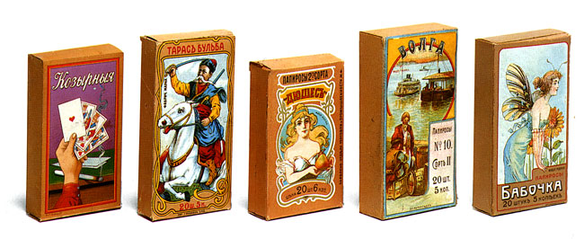 ![]() Неизвестный художник. Коробки папирос. Лицевая сторона. СПб., 1900-е годы // Русский графический дизайн / Авт. текста: Е. Черневич; Сост.: М. Аникст, Н. Бабурина; Дизайн: М. Аникст. - М.: Внешсигма, Б.г. (1997). - с. 100. |