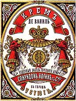 ![]() Неизвестный художник. Крем де ваниль. Водочный завод Торгового дома "Спиридон Ногин с сыном" в городе Устюг. Этикетка. Москва, 1900-е годы. 11х8,5 см // Русский графический дизайн / Авт. текста: Е.Черневич; Сост.: М.Аникст, Н.Бабурина; Дизайн: М. Аникст. - М. : Внешсигма, Б.г. (1997). - с. 110. |