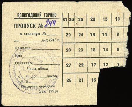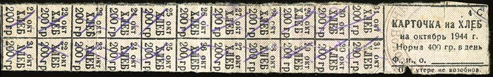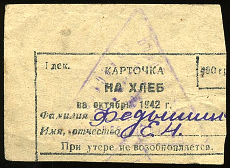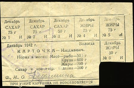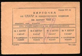 Карточка на сахар и кондитерские изделия. Август 1942. Норма - 400 гр