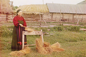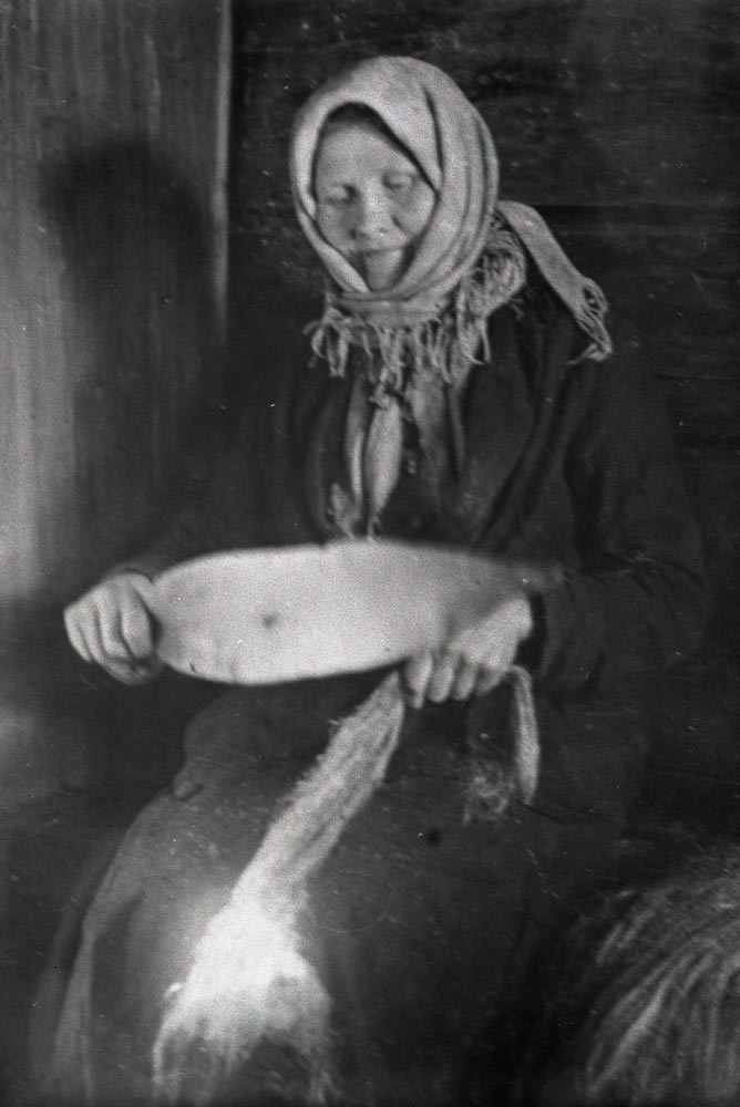 Обработка льна в д. Клюшино (Алексеевская в. Сольвычегодского у. Вологодской губ.), 1913 г.