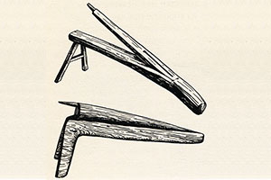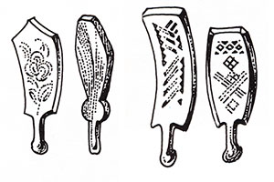 Деревянные вальки разной формы для обмолота льна и конопли.