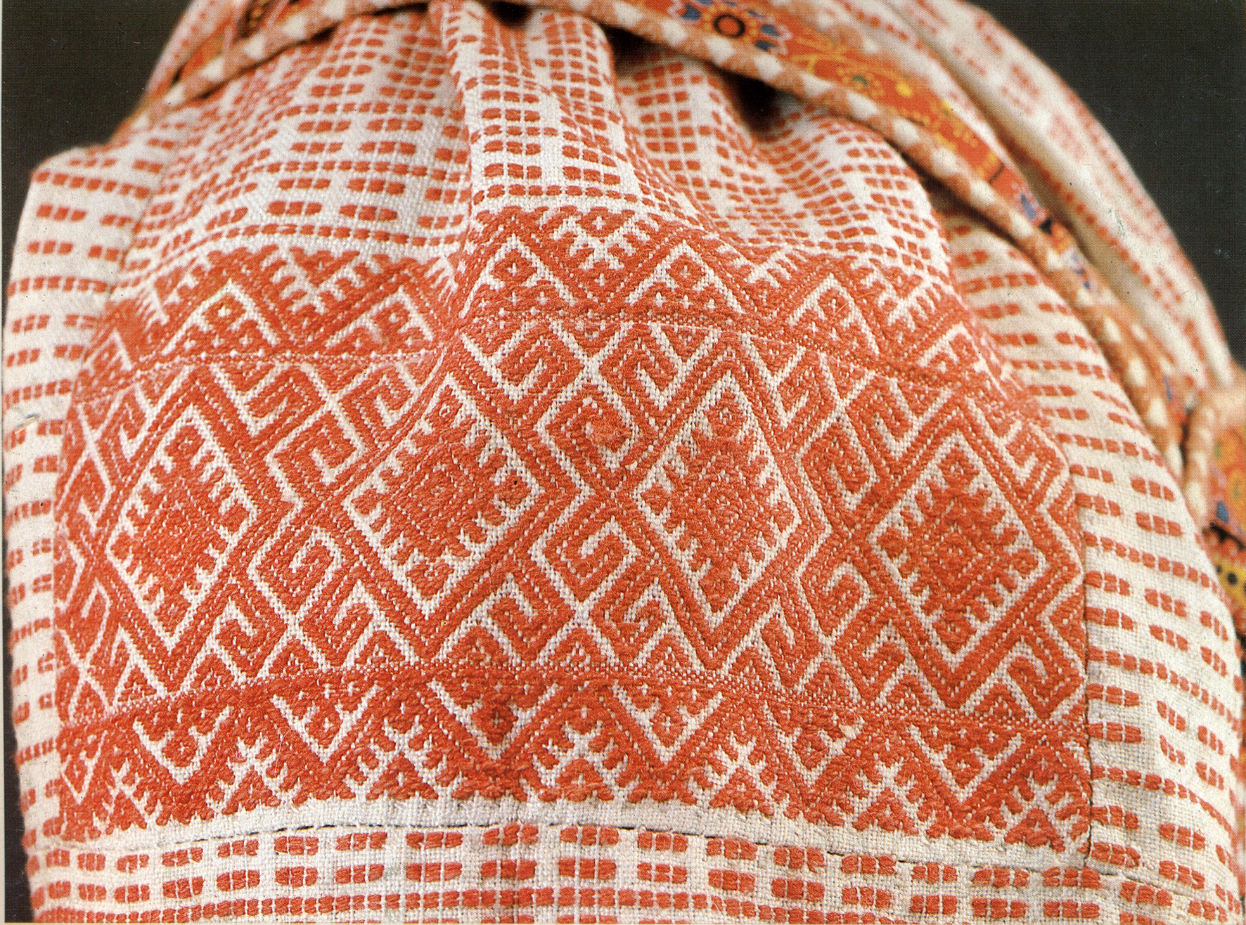 Деталь сарафана. XIX в. Грязовецкий уезд. Набойка, ткачество