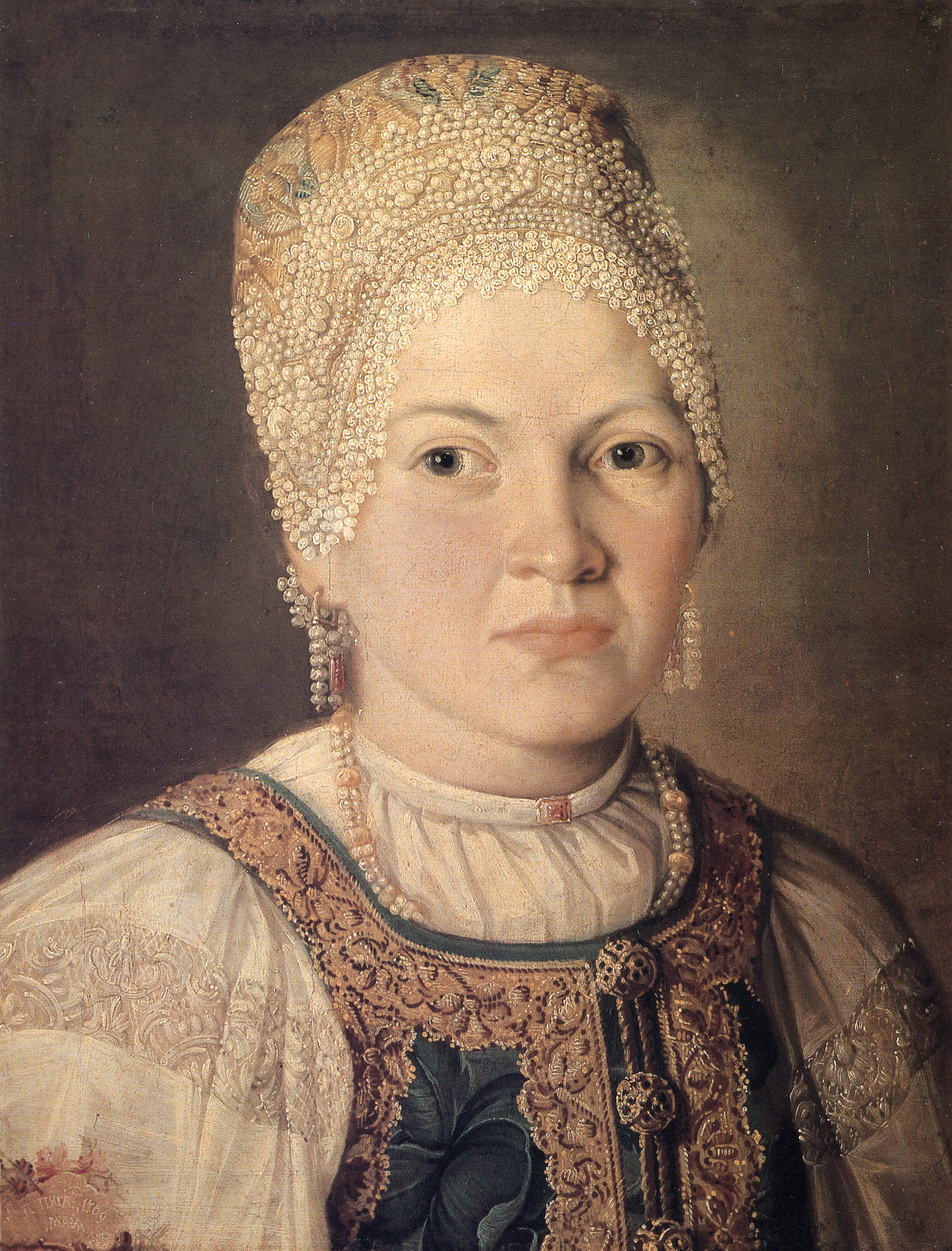 Неизвестный художник. Портрет неизвестной в русском головном уборе.
