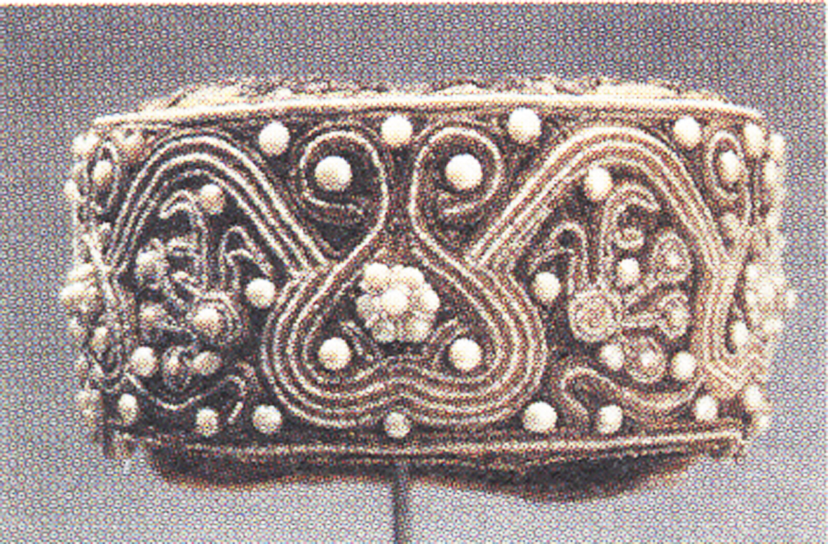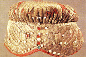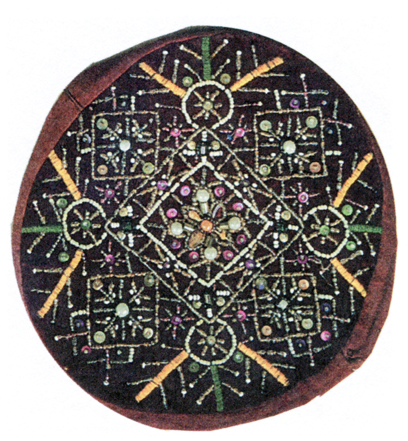 Начало XIX века. Вологодская губерния Шитье золотной нитью и низание мелким речным жемчугом, перламутровыми плашками по фольге и шелку