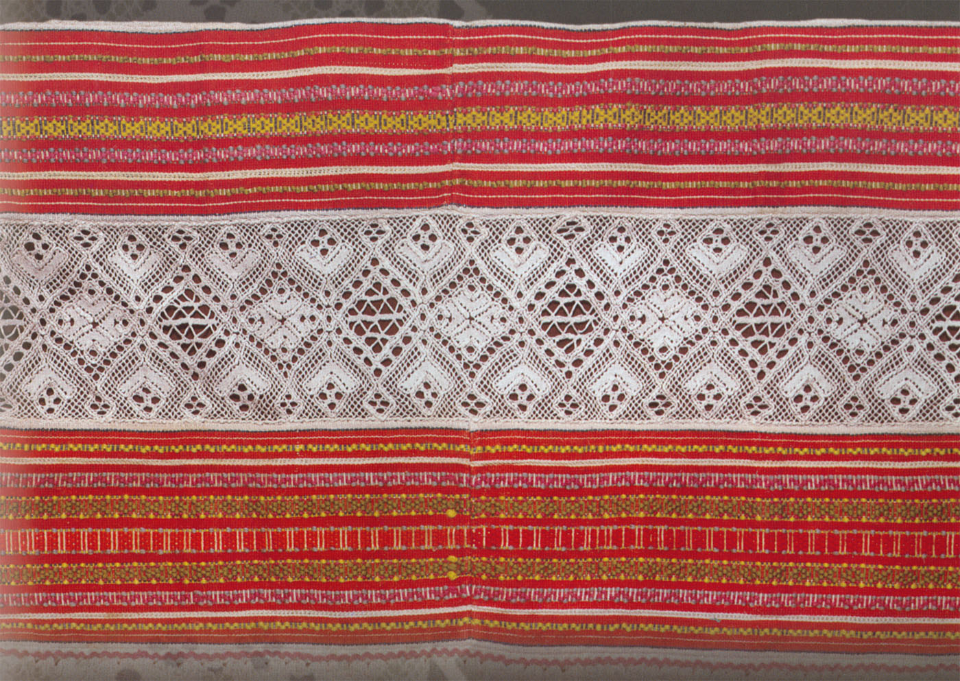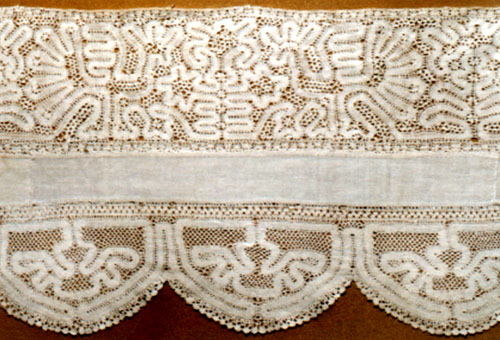 Парная кружевная проставка. Браное ткачество.Кружевной край выполнен в технике «вологодская манера». Вторая половина XIX в. Кадниковский у.