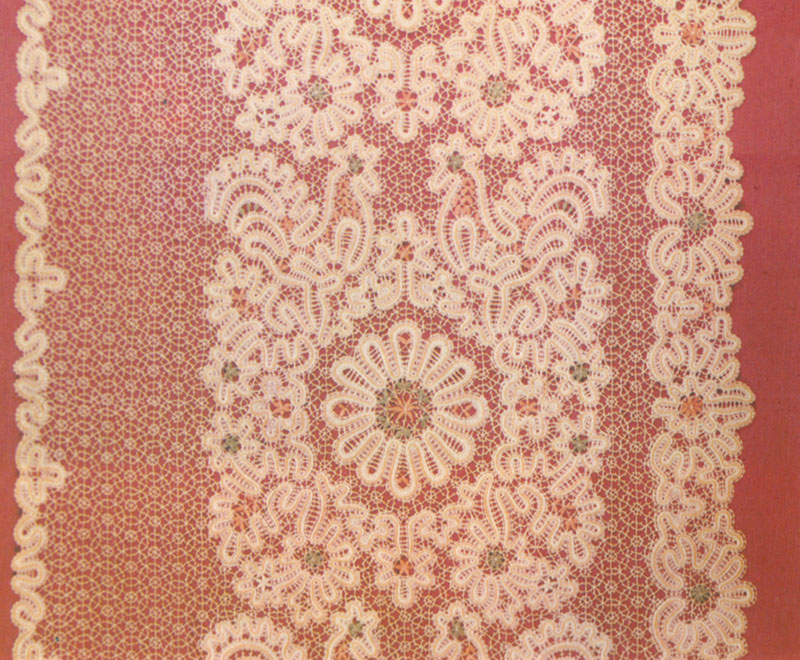 Автор А. Н. Ракчеева. 1986. Лен, хлопчатобумажные нити, сцепное кружево