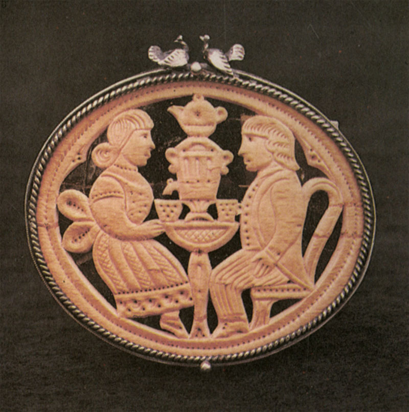 Брошь «Чаепитие». Авторы Т. Г. Вязов, В. П. Кордюков