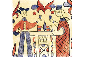 Роспись крышки сундука-теремка. Великий Устюг. XVII век.