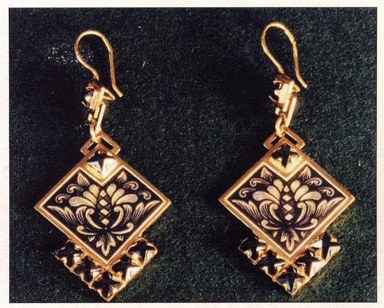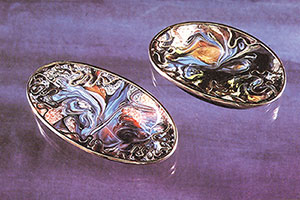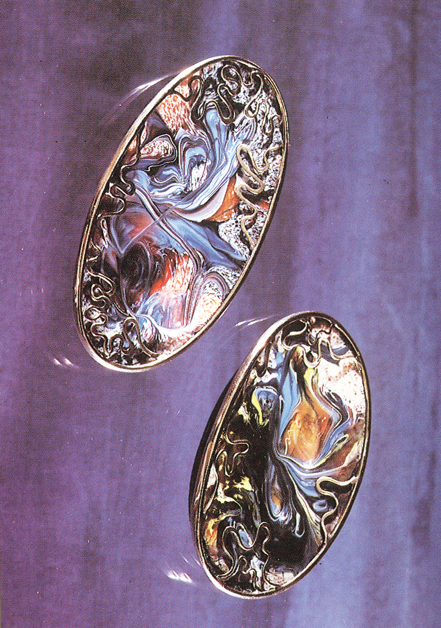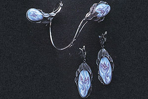 В.В. Попов, Л. Зимина (роспись). Ювелирный гарнитур «Ноктюрн» (кулон, серьги)