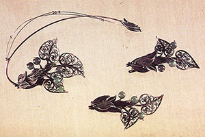 В.В. Попов. Ювелирный гарнитур «Папоротник» (браслет, серьги)