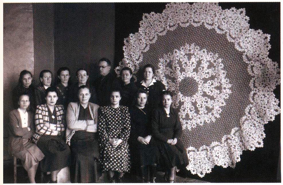 Кружевница артели Е. В. Левичева плетет панно «Герб» 1930-е гг.