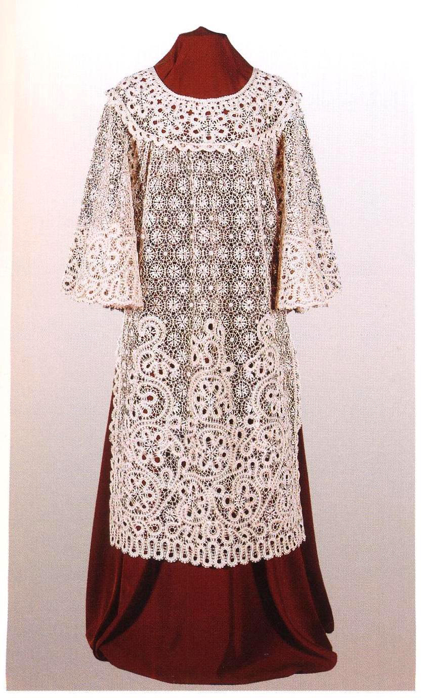 Туника. 1986 г. Авт. Г.Н. Мамровская. Р. 46-48. Лен отбеленный, люрекс, кружево, сцепная техника