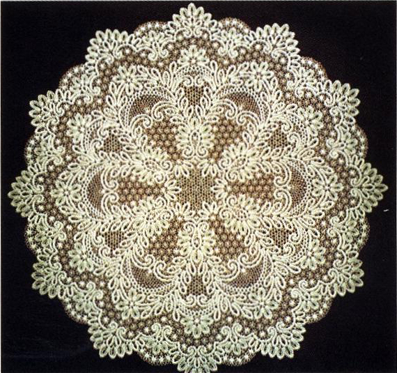 Автор А. Н. Ракчеева. 1986. Лен, хлопчатобумажные нити, сцепное кружево