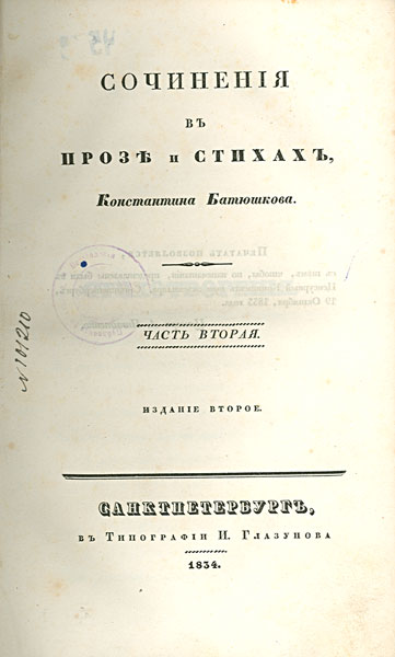 1834. – [4], 349c. Инв. №Р-100088 Т. 2, ч. 3. – 1834. –
