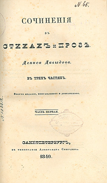 Стихотворения. – 1840. – [2], XV, 86, [2]с. Инв.