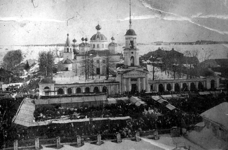 Ансамбль Вознесенской церкви в с. Никольское. Ярмарка. Фото 1912 - 1913 гг.