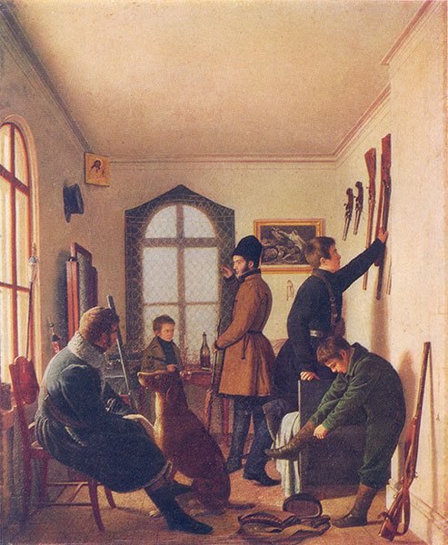 Сборы художников на охоту.