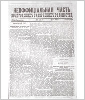 Вологодские губернские ведомости - это периодическое издание, издававшееся с 1838 по 1917 гг.