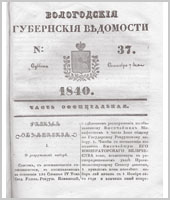 Вологодские губернские ведомости. Газета. 1840 год, Официальная часть: №37