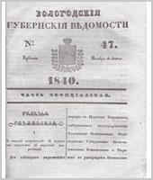 Вологодские губернские ведомости. Газета. 1840 год, Официальная часть: №47