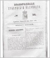 Вологодские губернские ведомости. Газета. 1847 год, Официальная часть: №26