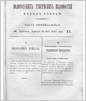 Вологодские губернские ведомости. Газета. 1847 год, Официальная часть: №17