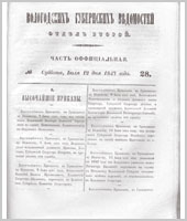 Вологодские губернские ведомости. Газета. 1847 год, Официальная часть: №28