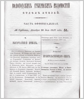 Вологодские губернские ведомости. Газета. 1847 год, Официальная часть: №51