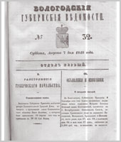 Вологодские губернские ведомости - это периодическое издание, издававшееся с 1838 по 1917 гг.