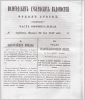 Вологодские губернские ведомости. Газета. 1849 год, Официальная часть: №4
