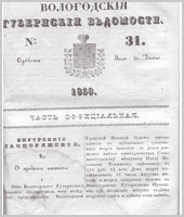 Вологодские губернские ведомости - это периодическое издание, издававшееся с 1838 по 1917 гг.