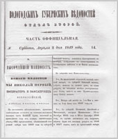 Вологодские губернские ведомости. Газета. 1849 год, Официальная часть: №14