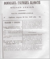 Вологодские губернские ведомости. Газета. 1849 год, Официальная часть: №34