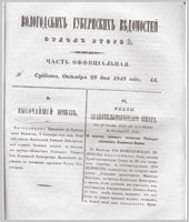 Вологодские губернские ведомости. Газета. 1849 год, Официальная часть: №44