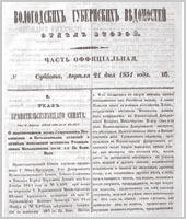 Вологодские губернские ведомости. Газета. 1851 год, Официальная часть: №16