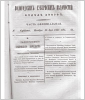 Вологодские губернские ведомости. Газета. 1851 год, Официальная часть: №45
