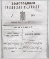 Вологодские губернские ведомости - это периодическое издание, издававшееся с 1838 по 1917 гг.
