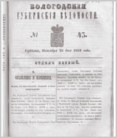 Вологодские губернские ведомости - это периодическое издание, издававшееся с 1838 по 1917 гг.